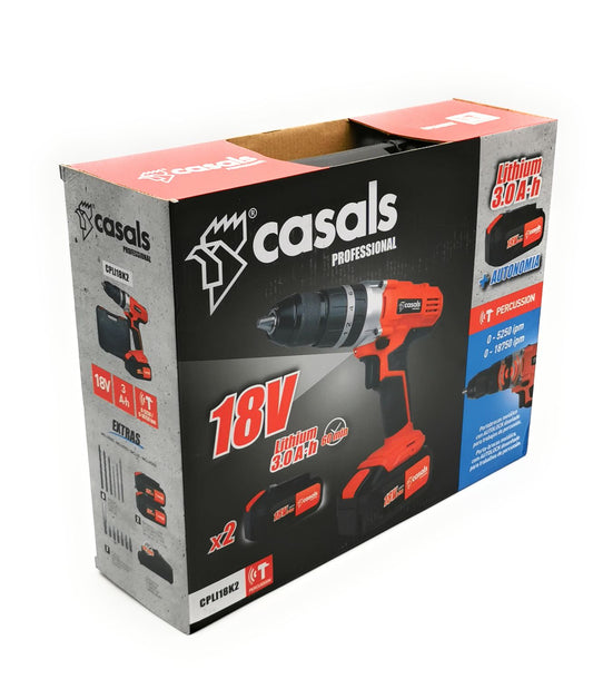 Casals CPLI18K2 Akku Schlagbohrmaschine Bohrmaschine Bohrer 2x3 Ah 18V rot | Neu