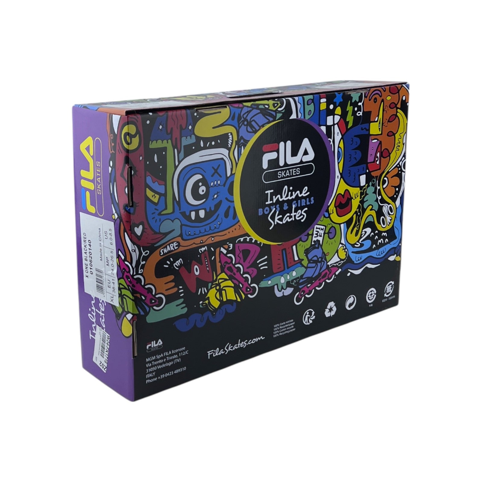 Fila Skates X-One Kinder Mädchen Jungen Inliner Inlineskates Schwarz/Rot 38-41EU | Neu