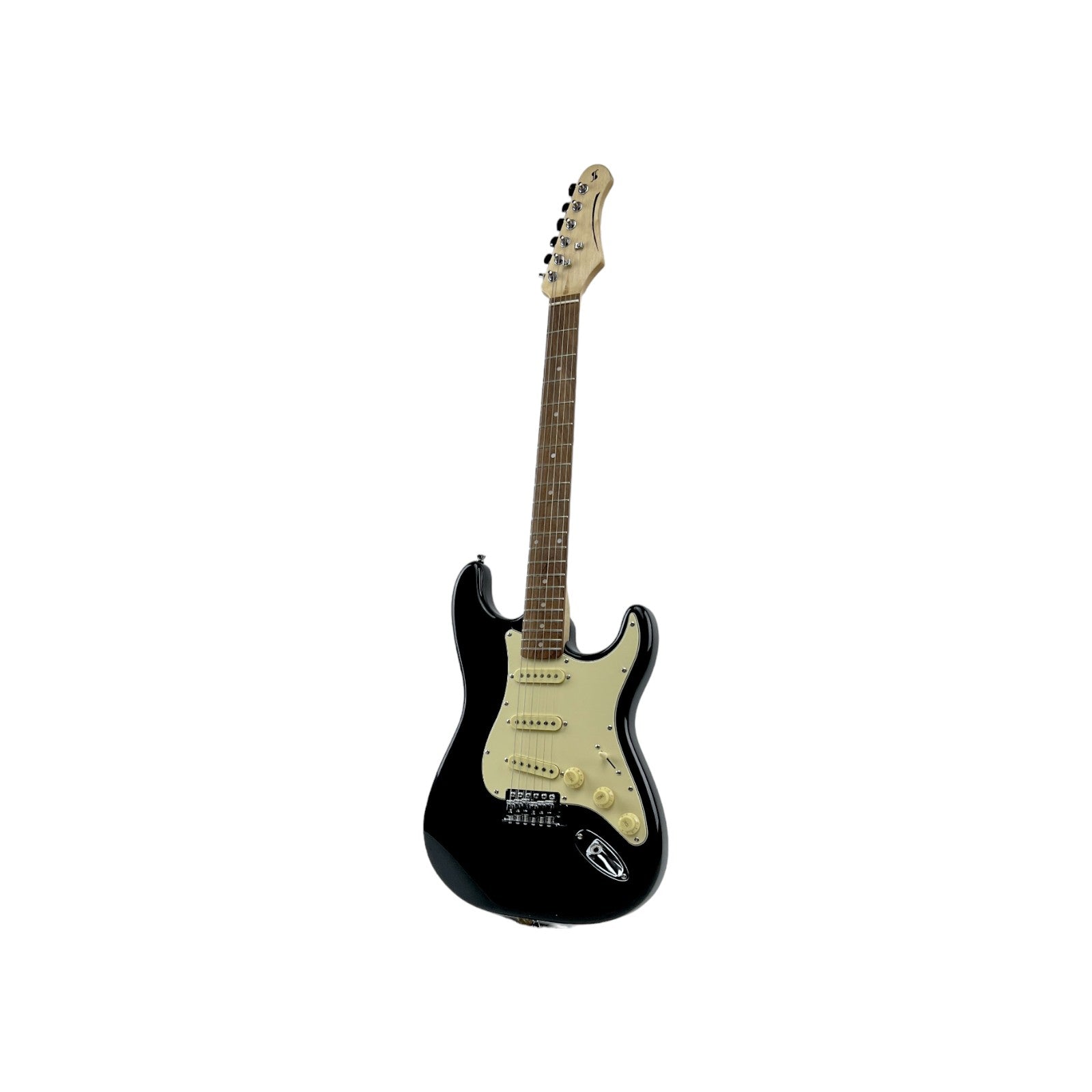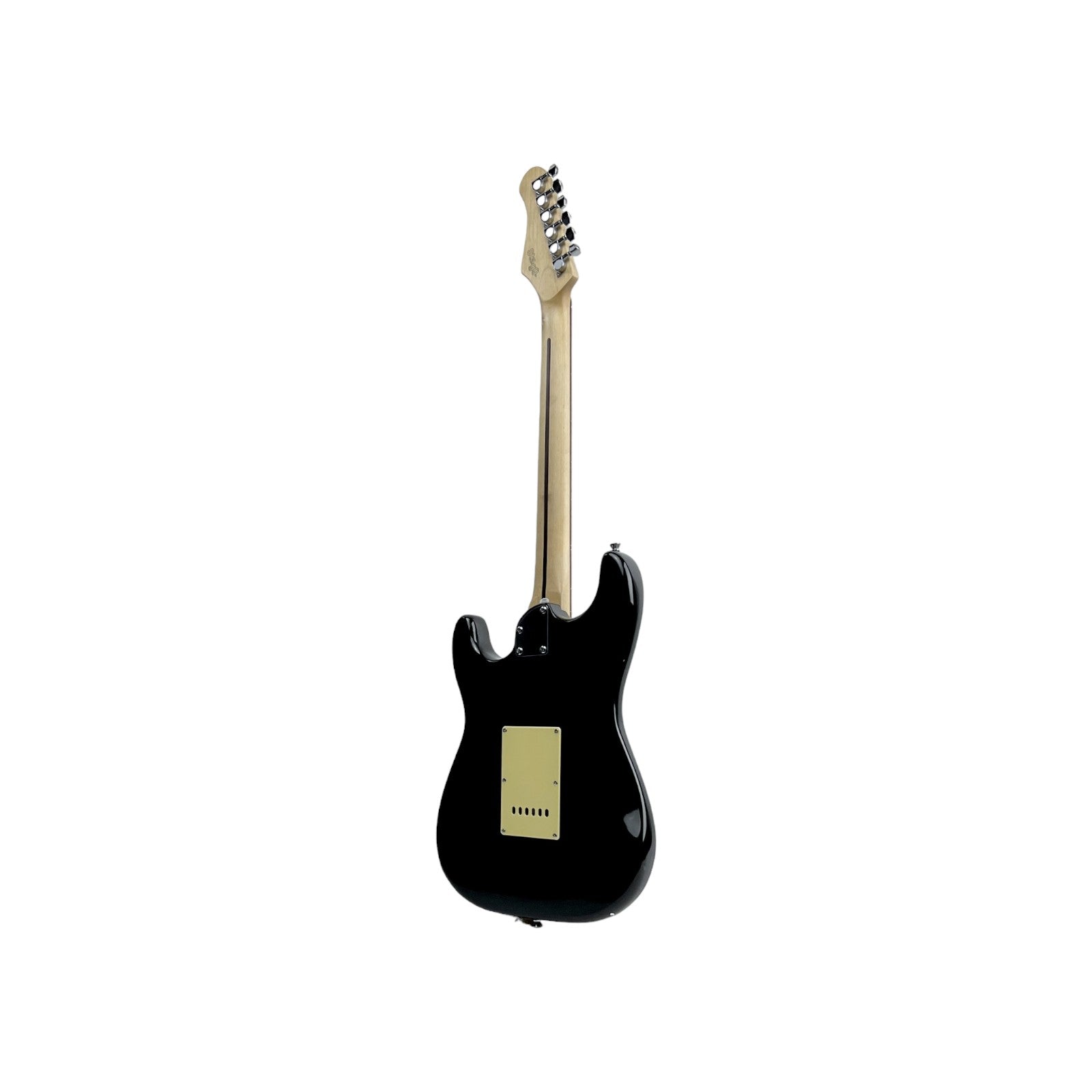 STAGG E Gitarre Standard S Paulownia massiv Schwarz brilliant Linkshänder | Retourware